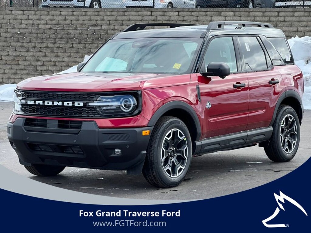 WE DELIVER! BUY ONLINE-TEXT-EMAIL-CHAT-PHONE AND WE WILL DELIVER YOUR NEXT VEHICLE TO YOUR DOOR! FROM OUR SALES FLOOR TO YOUR DOOR! IT'S THAT EASY! Ruby Red Metallic Tinted Clearcoat 2026 Ford Bronco Sport Outer Banks 4WD 8-Speed Automatic 1.5L EcoBoost 360-Degree Camera with Trail View, 4-Wheel Disc Brakes, 6 Speakers, ABS brakes, Air Conditioning, Alloy wheels, AM/FM radio: SiriusXM with 360L, AM/FM Stereo, Apple CarPlay/Android Auto, Auto High-beam Headlights, Auto-dimming Rear-View mirror, Automatic temperature control, Brake assist, Cargo Management System (Shelf/Divider/Table), Compass, Connected Navigation (1-Year Included), Delay-off headlights, Driver door bin, Driver vanity mirror, Dual front impact airbags, Dual front side impact airbags, Electronic Stability Control, Emergency communication system: SYNC 4 911 Assist, Equipment Group 300A Standard Package, Exterior Parking Camera Rear, Ford Connectivity Package (1-Year Included), Four wheel independent suspension, Front and Rear Floor Liners Without Carpet Mats, Front anti-roll bar, Front Bucket Seats, Front Center Armrest, Front Driver/Passenger Seat Back Map Pockets, Front dual zone A/C, Front fog lights, Front License Plate Bracket, Front Parking Sensors, Front reading lights, Fully automatic headlights, Heated door mirrors, Heated front seats, Heated steering wheel, Illuminated entry, Internet access capable: 5G Modem - Ford Connectivity Package, Knee airbag, Low tire pressure warning, Memory seat, Occupant sensing airbag, Outer Banks Tech Package+, Outside temperature display, Overhead airbag, Overhead console, Panic alarm, Passenger door bin, Passenger vanity mirror, Power door mirrors, Power driver seat, Power Moonroof, Power passenger seat, Power steering, Power windows, Radio data system, Radio: HD w/B&O Sound System by Bang & Olufsen, Rear anti-roll bar, Rear Parking Sensors, Rear reading lights, Rear seat center armrest, Rear window defroster, Rear window wiper, Remote keyless entry, Reverse Brake Assist, Security system, SiriusXM with 360L, Speed control, Speed-sensing steering, Speed-Sensitive Wipers, Split folding rear seat, Steering wheel mounted audio controls, SYNC 4 with Enhanced Voice Recognition, Tachometer, Telescoping steering wheel, Tilt steering wheel, Traction control, Trip computer, Variably intermittent wipers, Wheels: 18" Ebony Black.